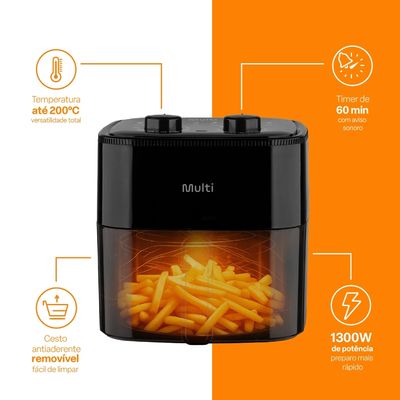 Fritadeira Elétrica Air Fryer 4,2L 1350W 220V Preta Multi – GO253