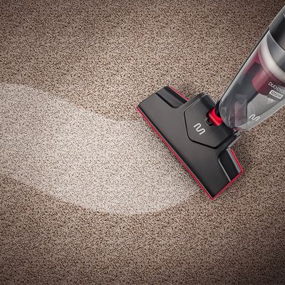 Seu design ergonômico inclui um interruptor duplo, localizado na alça da mão e na ponta da haste, permitindo ligar o aspirador sem se agachar, o que protege a postura. O bocal multiuso articulado 180° garante uma limpeza eficaz em diversas superfícies, alcançando cantos difíceis, como sob mesas e cadeiras. Acompanha bocais específicos para cantos e estofados, permitindo uma limpeza eficiente em frestas e móveis.