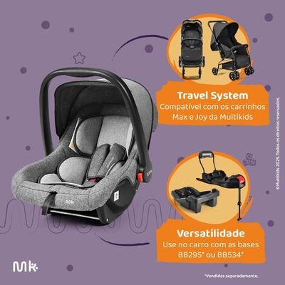 - Compatível com Travel System: integração com diversos carrinhos Multikids Baby.