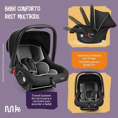 Bebê Conforto Rest Multikids Baby foi desenvolvido para facilitar o transporte e garantir o bem-estar das crianças do Grupo 0+ (do nascimento aos 13 kg). Com design funcional e materiais aconchegantes, ele oferece proteção e suavidade em cada trajeto.