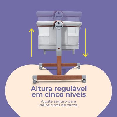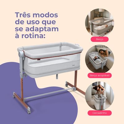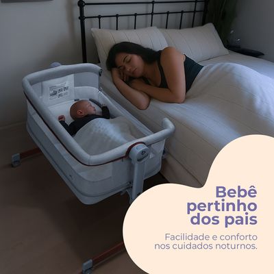 - Berço Acoplável (Co-sleeping): Permite que o bebê durma pertinho dos pais com segurança, facilitando os cuidados noturnos e a amamentação.