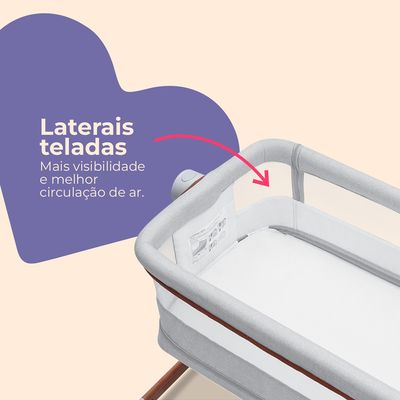 Visibilidade e Ventilação: As laterais teladas permitem uma melhor circulação de ar e garantem que você possa visualizar o bebê de qualquer ângulo a qualquer momento.