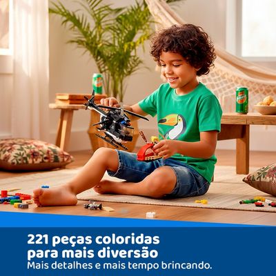 221 peças coloridas e de encaixe fácil, o brinquedo possibilita a criação de diferentes estruturas e montagens, incentivando a imaginação e a autonomia dos pequenos. As peças foram projetadas para oferecer segurança e praticidade, tornando o processo de montagem simples, intuitivo e envolvente.