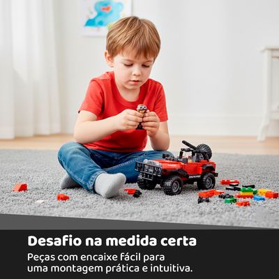 Cubic Off Road Jeep 253 Peças é um brinquedo fascinante, desenvolvido para estimular a criatividade, a imaginação e o raciocínio lógico das crianças de forma divertida e educativa. Com um design inspirado em veículos off-road, ele proporciona uma experiência envolvente, cheia de desafios e descobertas a cada nova construção.