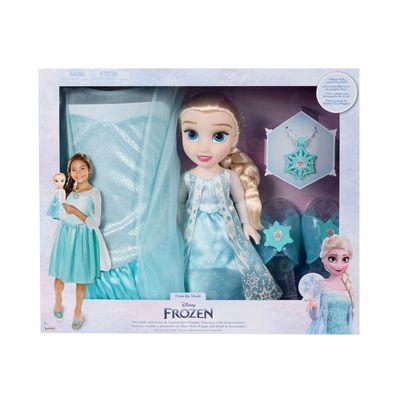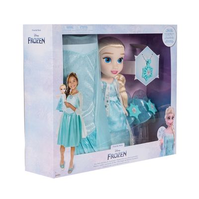 - Conteúdo da embalagem: 1 Boneca Disney Frozen, 1 Fantasia Infantil Tamanho Único, 1 par de sapatos tamanho único, 1 tiara.