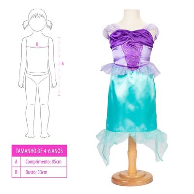 A brincadeira de faz de conta se torna ainda mais especial e mágica com esse conjunto, trazendo para a realidade a magia de se vestir como uma verdadeira princesa Disney! Acompanha vestido para a criança (tamanho único), sapatinhos e tiara!