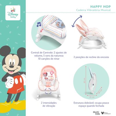 Transforme cada momento de descanso e diversão em uma experiência mágica com o Bouncer Happy Hop Disney Baby. Seu bebê vai adorar!