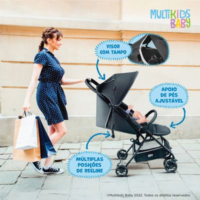 O carrinho de bebê dobrável e compacto Multikids Spy foi desenvolvido para que toda família possa curtir os passeios. Desenvolvido pensando na segurança e conforto da criança, é como uma extensão do colo dos pais.