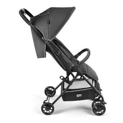 Tem pouco espaço para guardar as coisas do bebê? Com o fechamento tridimensional, o carrinho de bebê Spy fica em um tamanho supercompacto.
