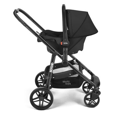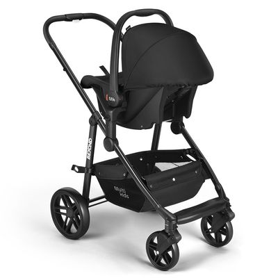 Na cor preto, é discreto e combina com tudo. Além de contar com apoio para pés, que proporciona maior conforto para a criança durante o passeio.