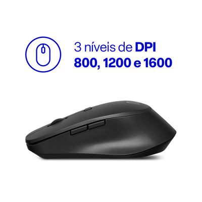 3 níveis de DPI ajustável (800, 1200 ou 1600), proporcionando movimentos suaves e precisos conforme o tipo de tarefa. Já o teclado conta com a exclusiva