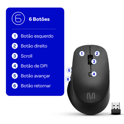 - Mouse com DPI ajustável: níveis de 800, 1200 ou 1600 para maior precisão.