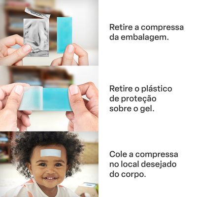 - A compressa absorve o calor da pele aliviando a febre.