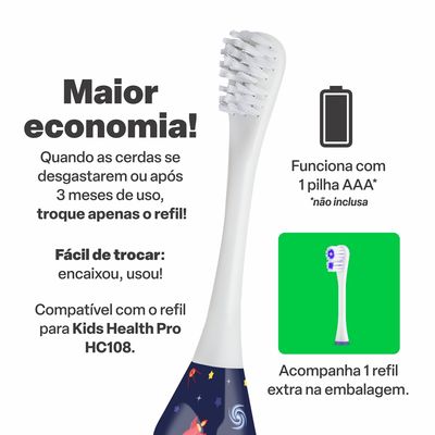 Nossa escova infantil funciona com apenas 1 pilha AA e é resistente à água, o que a torna perfeita para uso diário. Além disso, ela remove até 2 vezes mais placas bacterianas do que as escovas tradicionais, proporcionando uma higiene oral superior para seus pequenos.