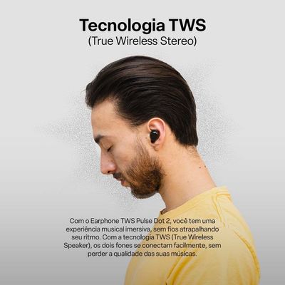- Tecnologia TWS (True Wireless Stereo) para uso totalmente sem fios