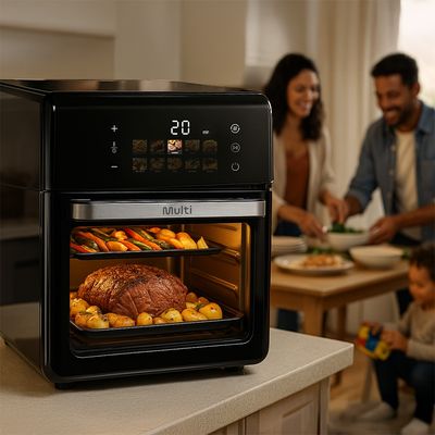 super capacidade de 10L, ideal para preparar pizzas, frangos inteiros e porções maiores em menos tempo.