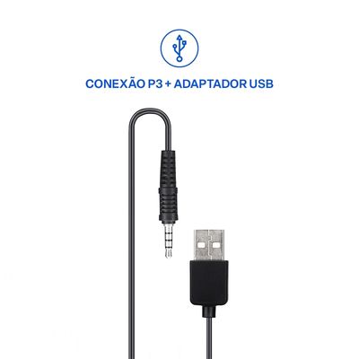- Conexão dupla: P3 (3,5mm) e USB, com adaptador incluso