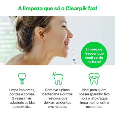 TENHA UMA LIMPEZA BUCAL PROFUNDA, RÁPIDA E EFICAZ PARA À SUA ROTINA!.A limpeza que só o Clearpik faz!