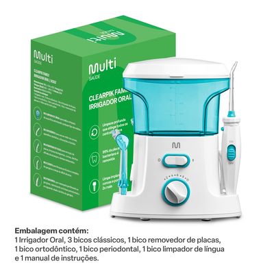 Irrigador Oral Clearpik Familyajuda você a ter uma limpeza bucal completa e prática. Ele limpa os cantos da boca e entre os dentes, removendo todos os resíduos que a escova não alcança combatendo o mau hálito e a gengivite.