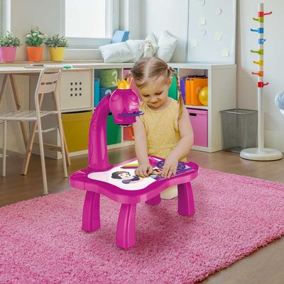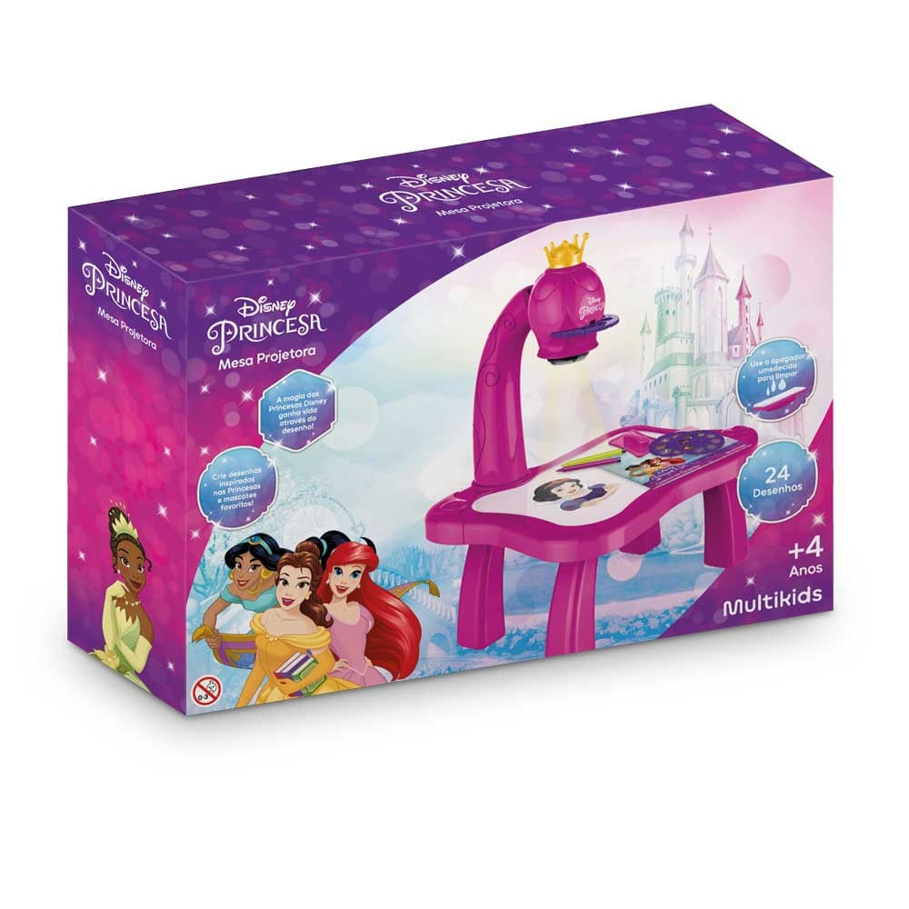 A mesa da Multikids projeta imagens das Princesas Disney ou das mascotes para as crianças desenharem de forma fácil e divertida. Além disso, elas podem colorir, escrever e apagar, tudo em um só lugar.