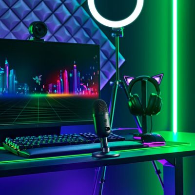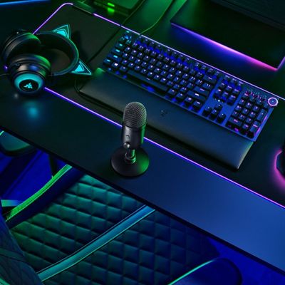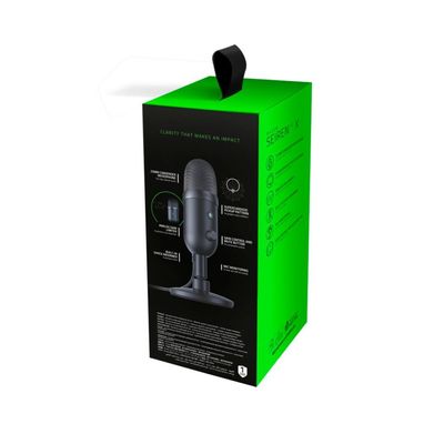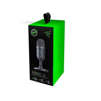Razer Seiren V2 X, um microfone USB condensador projetado para elevar a qualidade do seu áudio durante suas transmissões.