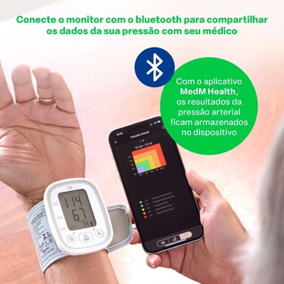 Desfrute da comodidade de sincronizar seus dados de pressão arterial com o aplicativo MedM Health em seu smartphone ou dispositivo móvel. Isso permite que você acompanhe seu progresso ao longo do tempo e compartilhe informações importantes com seu médico ou profissional de saúde.
