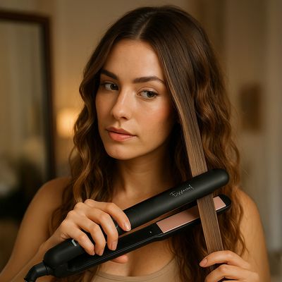 formato arredondado facilita a criação de ondas e cachos, além do alisamento tradicional, trazendo mais versatilidade para seus penteados.