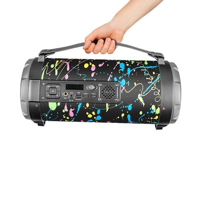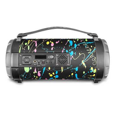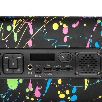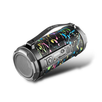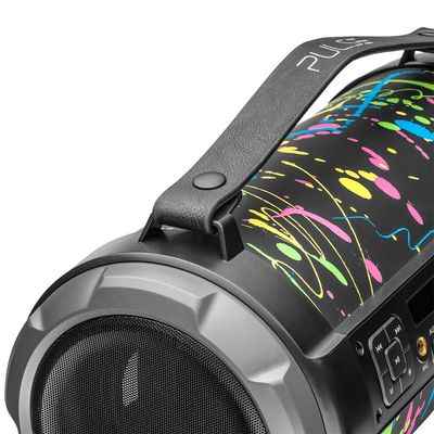 Com um design moderno e estampa colorida, a speakers Som Bazooka da Pulse leva até sua festa mais som e diversão por muito mais tempo!