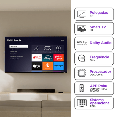 Eficiente e resistenteA Multi Roku TV 32" Smart tem