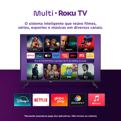 Smart em todos os detalhesA Multi Roku TV é inteligente o suficiente para reunir seus apps de streaming favoritos, diversas entradas e qualidade de imagem em um só lugar. Explore o melhor de TV com configurações simples que qualquer pessoa pode entender.