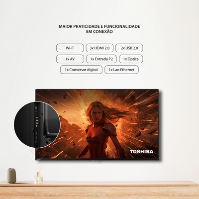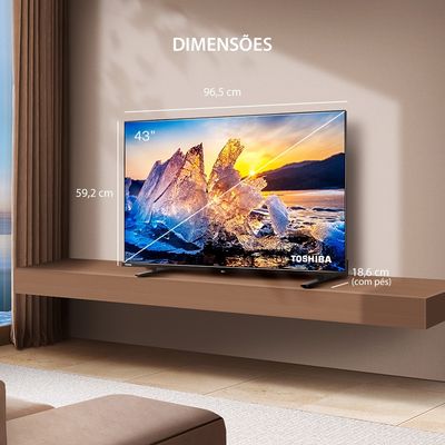 A Smart TV 43” Toshiba combina qualidade de imagem e som superiores com um design elegante e funcionalidades práticas. Ela é fácil de usar e integra perfeitamente qualquer ambiente.