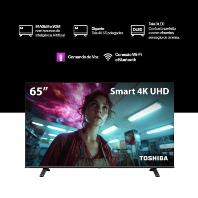 O Televisor 65 Polegadas 4K Smart Toshiba é o futuro da TV, oferecendo entretenimento de alta qualidade de forma rápida e conveniente!