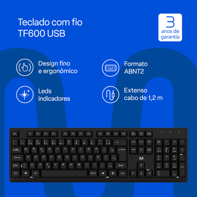 Teclado com Fio USB TF600 Preto Multi – TC600