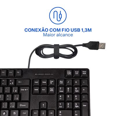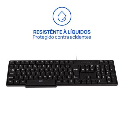 oferecendo mais segurança contra respingos e pequenos acidentes. É perfeito para quem precisa de um teclado confiável, seja no escritório, home office ou uso pessoal.