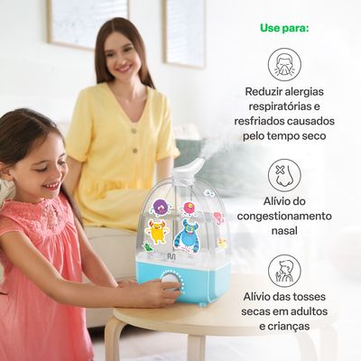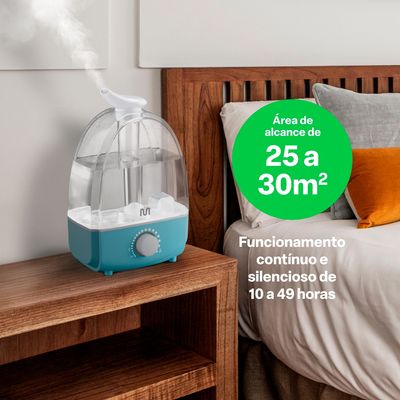 Com sua função de umidificação, ele hidrata as vias respiratórias, reduzindo tosses secas, congestões nasais e problemas respiratórios. Além disso, esse umidificador possui um funcionamento silencioso e contínuo por até 49 horas, garantindo um ambiente tranquilo e confortável.