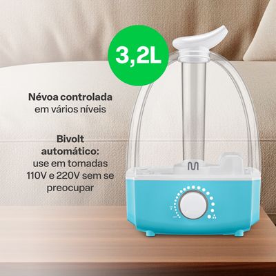 Esse modelo é compatível com o uso de óleos essenciais, permitindo que você adicione aromas agradáveis ao ar umidificado. Seu reservatório possui capacidade para 3,2 litros de água, garantindo uma longa duração de uso antes da necessidade de reabastecimento.