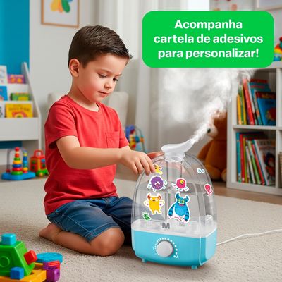 Uma característica interessante do Umidificador de Ar é que ele não emite ruídos durante o funcionamento, proporcionando um ambiente ainda mais tranquilo para descanso ou trabalho. Além disso, ele acompanha uma cartela de adesivos, permitindo personalizá-lo e deixá-lo mais divertido.